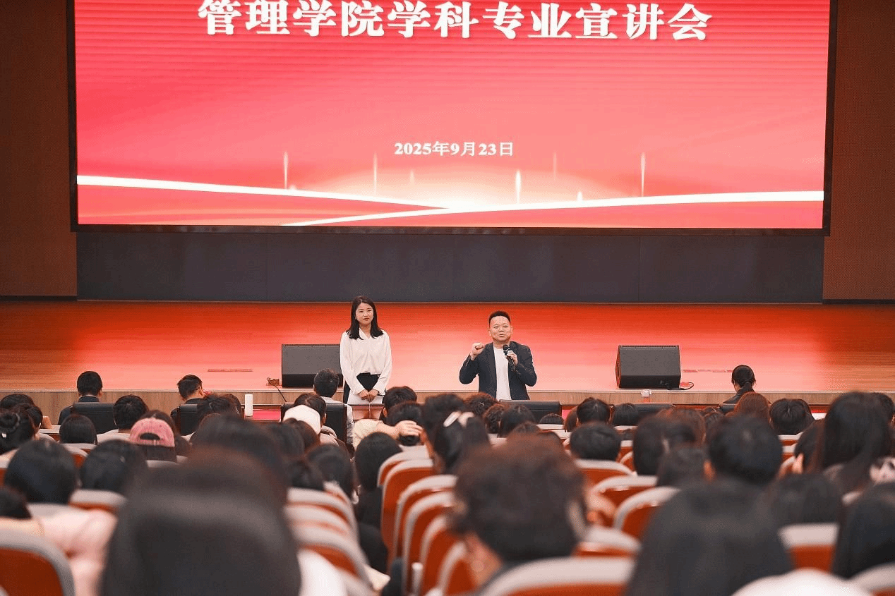 管理學(xué)院于9月23日舉行新生入院儀式暨專業(yè)宣講會。文衛(wèi)院長寄語新生成為“知行合一的踐行者”。劉興、王記志、張惠、唐菁陽等教師結(jié)合行業(yè)趨勢與校友案例,系統(tǒng)介紹國際經(jīng)濟(jì)與貿(mào)易、電子商務(wù)、財務(wù)管理等專業(yè)的發(fā)展路徑,強(qiáng)化新生的職業(yè)規(guī)劃意識。