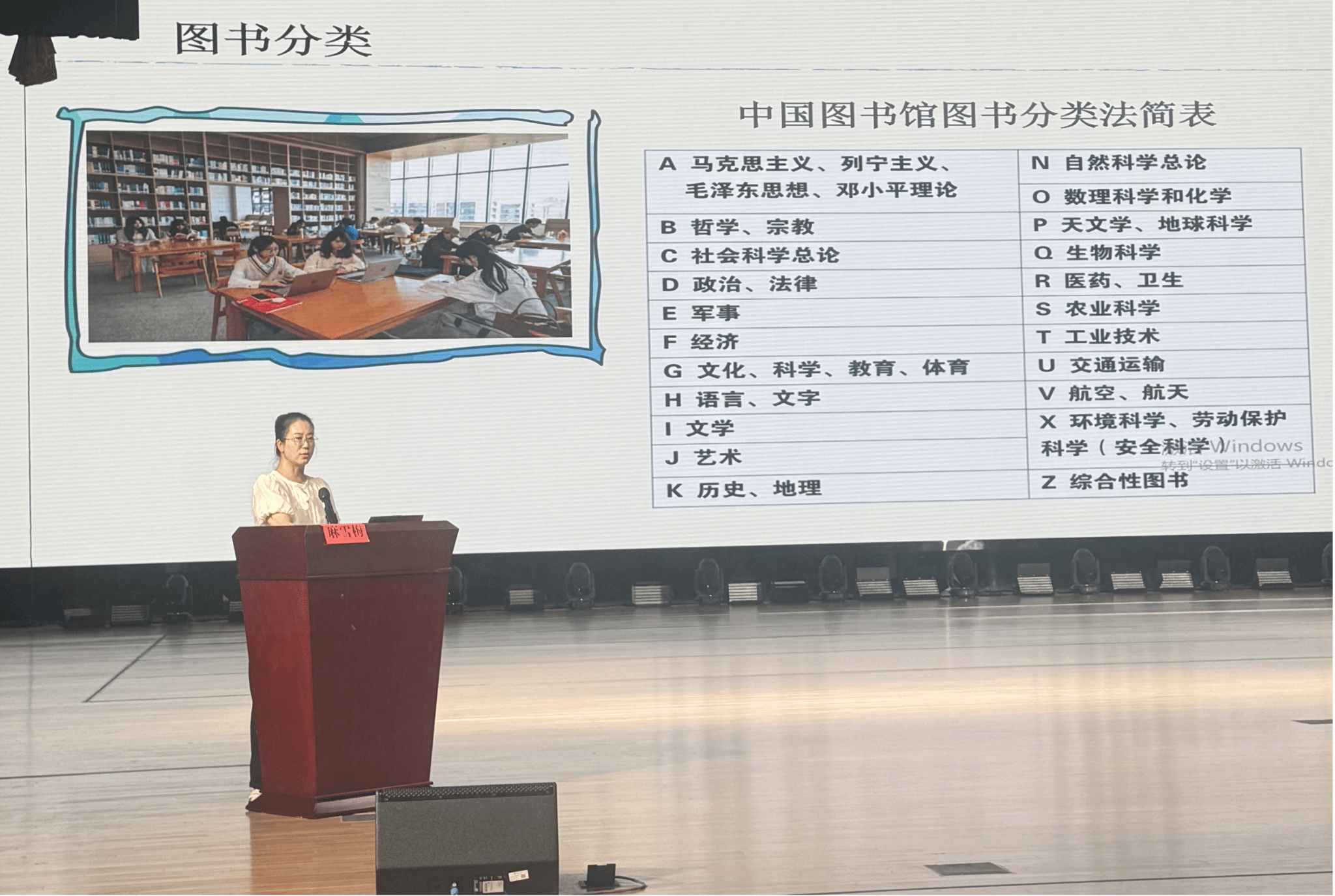 麻雪梅館長為新生講解圖書館服務(wù)指南