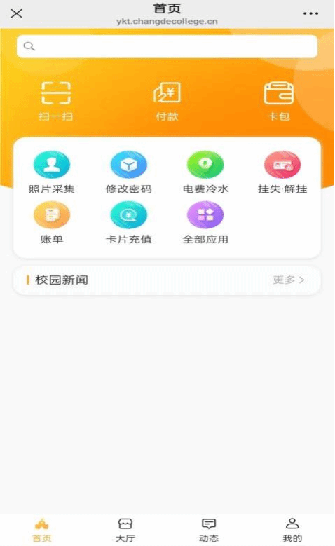 2.點(diǎn)擊“校園服務(wù)”,點(diǎn)擊“一卡通”。
