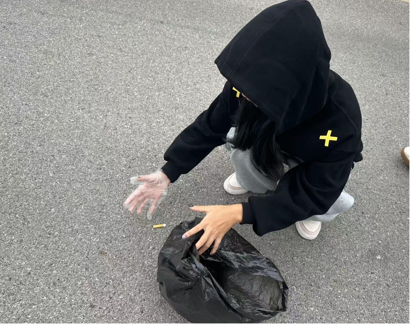 隨著清理工作深入,青年們重點(diǎn)排查了公園內(nèi)隱匿垃圾。在草坪深處,大量煙頭被發(fā)現(xiàn),凸顯部分游客環(huán)保意識(shí)不足;同時(shí),廢棄塑料瓶、包裝袋以及湖邊草坪上纏繞小草的漁線等特殊垃圾也被一一收集。這些發(fā)現(xiàn)讓青年們直觀感受到環(huán)境污染的嚴(yán)峻性,更深刻體會(huì)到生態(tài)保護(hù)的緊迫性。