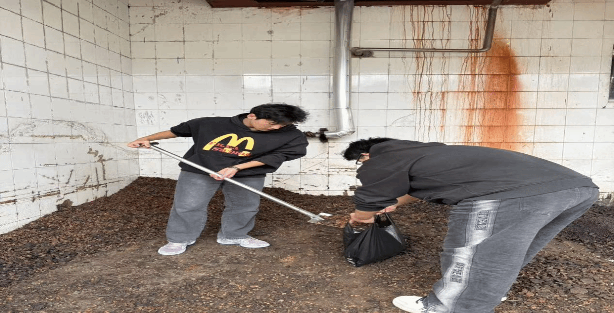 調(diào)研過程中,小組成員系統(tǒng)掌握中藥生產(chǎn)全流程,并聚焦產(chǎn)業(yè)末端核心難題。他們?nèi)膛宕鞣雷o手套,在生產(chǎn)線末端嚴(yán)格遵循操作規(guī)程,協(xié)助工人完成中藥渣集中接收、規(guī)整裝袋及初步轉(zhuǎn)運等工作,以躬身實踐為雙創(chuàng)項目積累了寶貴一手?jǐn)?shù)據(jù),也深化了對專業(yè)知識的應(yīng)用認(rèn)知。