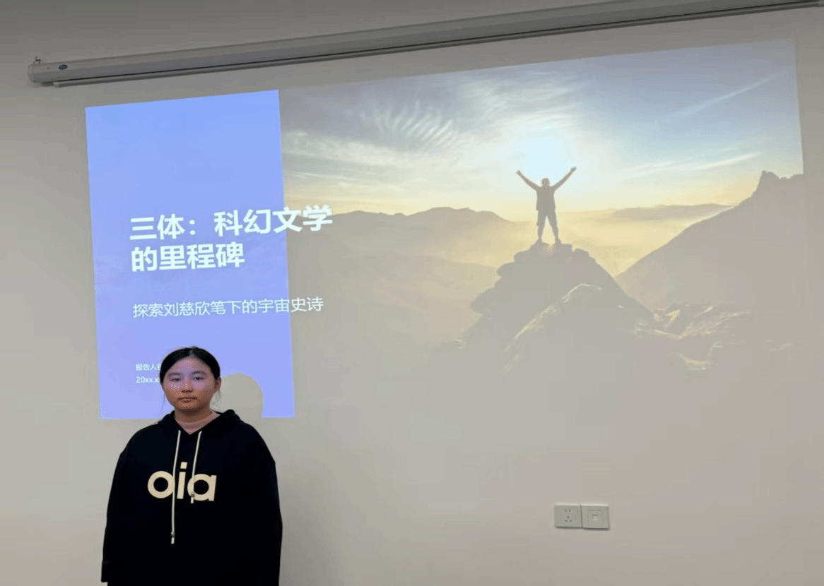 活動(dòng)由楊媛同學(xué)主持,她從“科幻中的科學(xué)邏輯”出發(fā),將“黑暗森林法則”與藥學(xué)中的“靶向遞送系統(tǒng)”相聯(lián)系,闡釋二者在識(shí)別精準(zhǔn)性與作用機(jī)制上的共通之處。她結(jié)合葉文潔對(duì)宇宙信號(hào)的探索、羅輯的成長(zhǎng)路徑,以及程心所面臨的倫理抉擇,分別映射藥學(xué)人在疾病機(jī)制研究、科研信念建立與藥物倫理權(quán)衡中的現(xiàn)實(shí)處境,指出《三體》所體現(xiàn)的系統(tǒng)思維與風(fēng)險(xiǎn)意識(shí),與藥學(xué)追求“精準(zhǔn)干預(yù)、機(jī)制明晰與全程可控”的目標(biāo)高度契合。