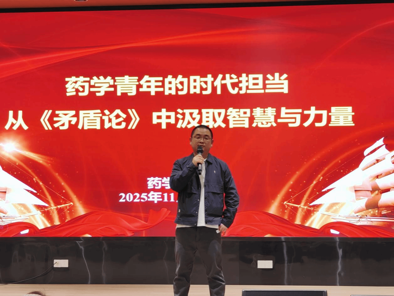 開班第一課由楊志勇副院長主講。他以《矛盾論》哲學(xué)思想為主線,結(jié)合多年教學(xué)管理經(jīng)驗,深入闡釋藥學(xué)青年的成長路徑與時代責(zé)任。課程從“內(nèi)因與外因”“主次矛盾”“矛盾普遍性與特殊性”等角度出發(fā),引導(dǎo)學(xué)員科學(xué)規(guī)劃學(xué)業(yè)與職業(yè)發(fā)展,并鼓勵大家以開拓者的姿態(tài),積極投身健康中國建設(shè)。以《矛盾論》思維指導(dǎo)學(xué)業(yè)與職業(yè)規(guī)劃。