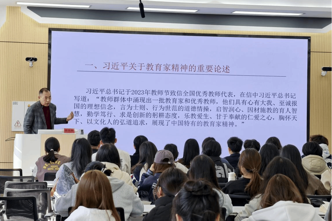 李尚群院長(zhǎng)應(yīng)邀為培訓(xùn)班學(xué)員講授第一堂課,主題為“教育家精神的時(shí)代意蘊(yùn)與本土實(shí)踐”。他領(lǐng)學(xué)了習(xí)近平總書(shū)記關(guān)于中國(guó)特有的教育家精神的重要論述,并從文化、國(guó)家、學(xué)校和教師四個(gè)層面深入分析了教育家精神的價(jià)值功能,而后結(jié)合主旋律電視劇《山花爛漫時(shí)》的教育敘事解釋了教育家精神的本土實(shí)踐,讓學(xué)生深刻地感受到教育精神的精神力量和實(shí)踐品格。