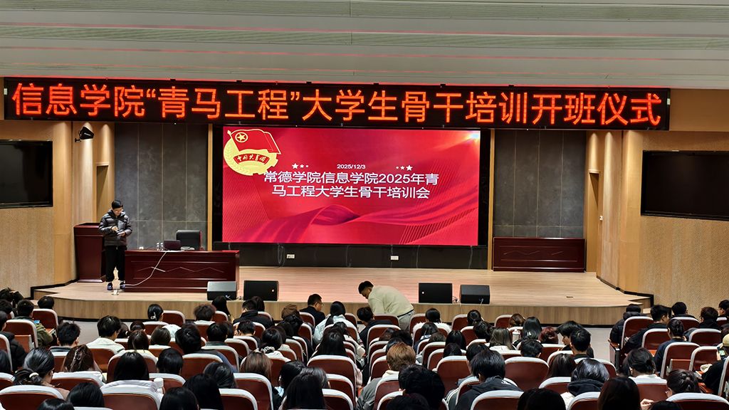 2025年12月3日晚,常德學(xué)院信息學(xué)院2025年“青馬工程”大學(xué)生骨干培訓(xùn)開班儀式暨首場專題講座在圖書館第二報(bào)告廳舉行。信息學(xué)院院長卓志宏教授、學(xué)工辦負(fù)責(zé)人晏臻及輔導(dǎo)員劉燕、胡麗、劉俊帆出席活動(dòng),學(xué)院全體團(tuán)員及學(xué)生干部共同參與。