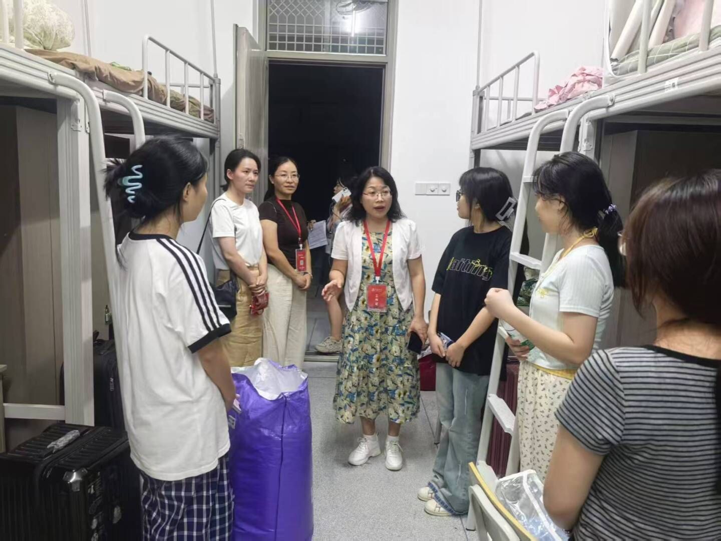 走訪團隊先后來到多個新生寢室,與同學(xué)們親切交流。“行李都收拾好了嗎?”“第一次離開家還習(xí)慣嗎?”周新云院長如家人般關(guān)心著每位同學(xué)的適應(yīng)情況,細(xì)致詢問實際需求。老師們耐心傾聽新生心聲,解答各類疑問,并貼心介紹校園布局和常用路線,幫助大家更快熟悉新環(huán)境。